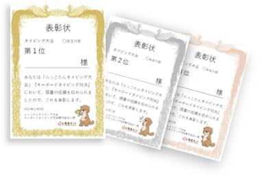 全国タイピング大会って? 全国約100万人のらっこたんユーザーを対象とした、タイピング大会です。 いつ? 2025年1月14日~1月24日 (練習期間:2025年1月6日~1月13日) どうやって参加するの? 大会期間になったら、 1 にログイン 2 タイピングの「すべてのメニュー」から「全国タイピング選手権」をクリック 3 自分の学年をえらんで、スタート! 良い成績を出すには? タイピングの速さと正確さで判定されます。くりかえし挑戦しよう。 表彰って? 「総合得点」と「前回からの伸び幅」の2部門で表彰します。各学年10位までにランクインすると賞状が! それぞれ1位には、景品も・・・?