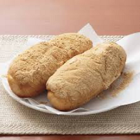 コッペパンの揚げた物で、きなこがかかってます。とても美味しいですが、とても食べづらいです。