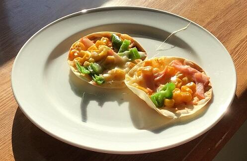 餃子の皮にハム、チーズ、ピーマンなどを挟んでホットプレートやフライパンで焼くだけ!