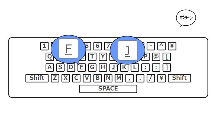 キーボードの( F )と( J )には、ポチッとした突起がついていて、( ひとさしゆび )を置くための印になっている。