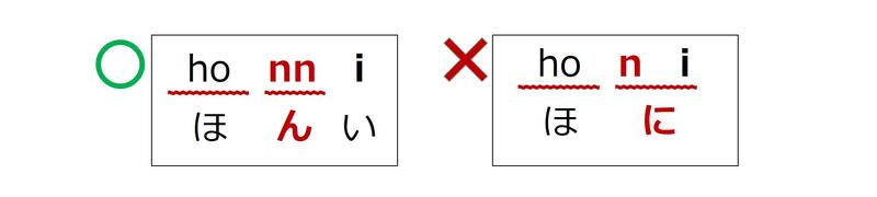 「ほんい」の「ん」、nが2回いる。